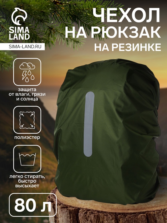 Чехол на рюкзак 80 л, со светоотражающей полосой, цвет зелёный