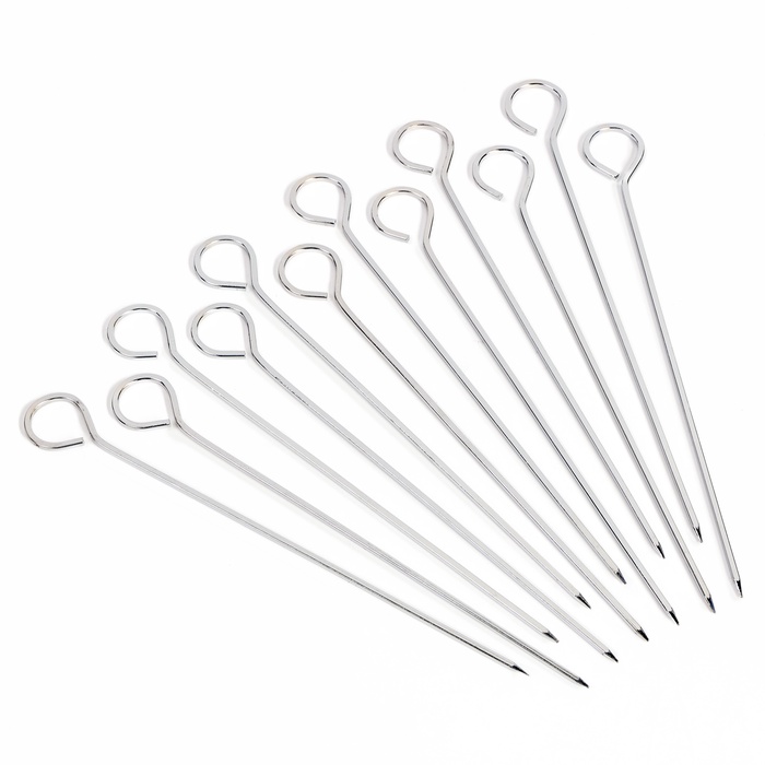 Набор шпажек - шампуров для шашлыка 12 шт., 20 см, рукоять - кольцо, металлические