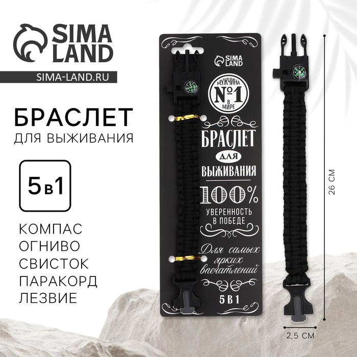 Браслет для выживания «100% мужику», 26×2.5 см