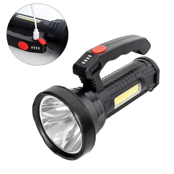 Фонарь ручной аккумуляторный, 5000 мАч, P90, COB, IPX4, 7 режимов, zoom, USB, microUSB