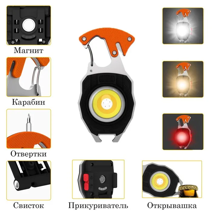 Фонарь многофункциональный, 5 Вт, 740 лм, 500 мАч, COB, зажигалка, 2 отвертки, открывашка