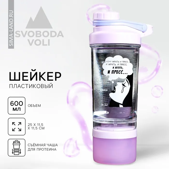 Шейкер спортивный, с чашей «Хочу жрать и пресс», 600 мл