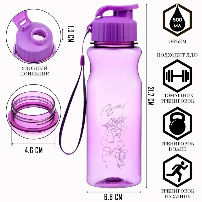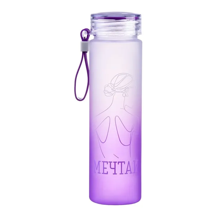 Бутылка для воды спортивная, прозрачная, 450 мл, 20×8 см, пластиковая, сиреневая