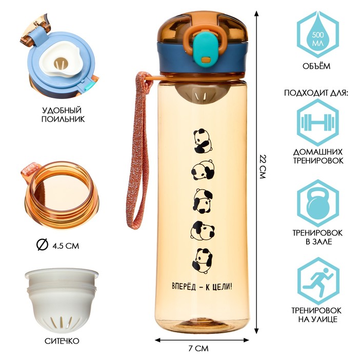 Бутылка для воды, 500 мл, "Вперед - к цели", с поильником