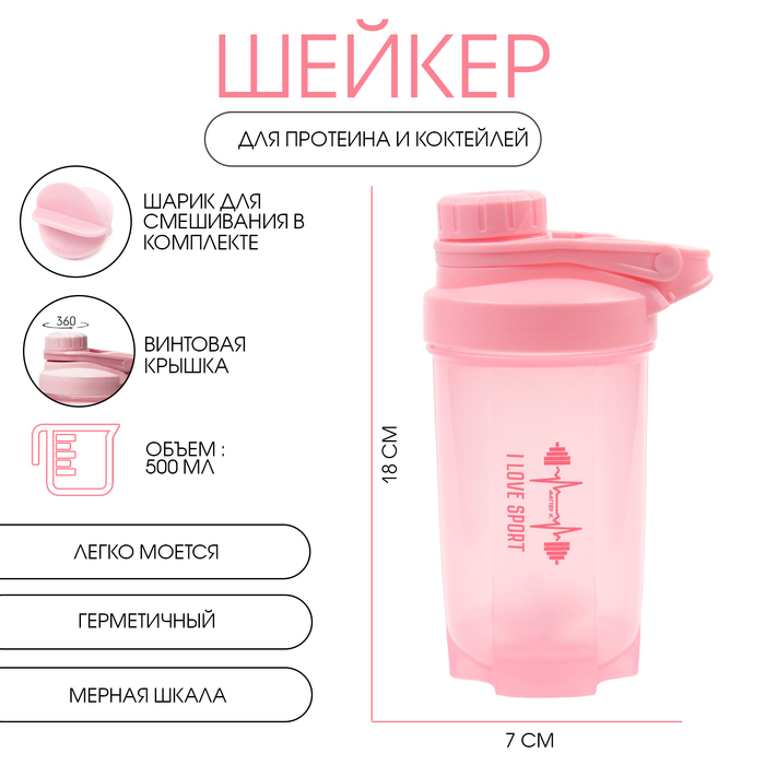 Шейкер спортивный для коктейлей, спортивного питания, 500 мл, Power, 18 х 7 см
