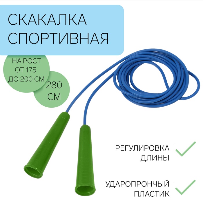Скакалка спортивная, 2.8 м, регулируемая, синяя