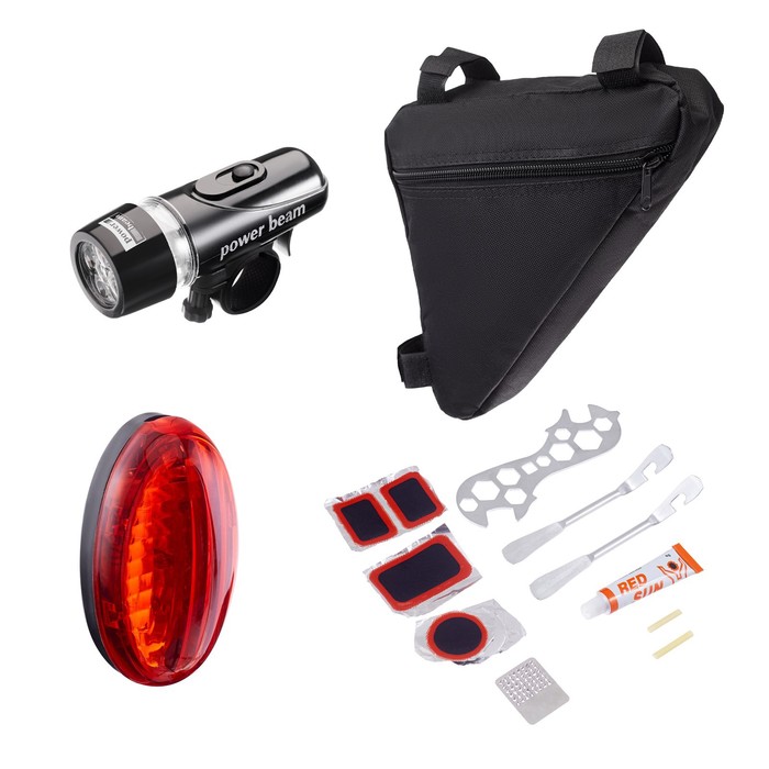 Набор для велосипеда 3 в 1: фонарь, ремонтный набор, сумка 20×20×27 см