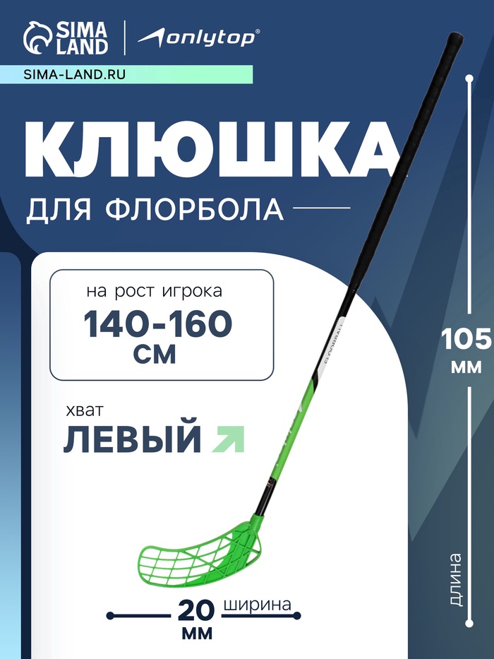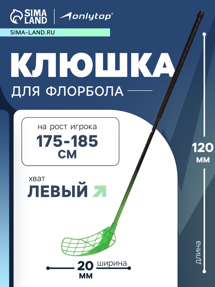 Клюшка для флорбола ONLYTOP, взрослая, левый хват, 95 см, жёсткость 20 кг/мм, цвет зелёный