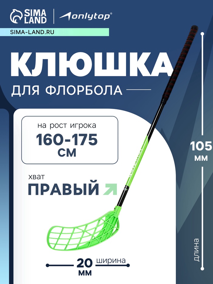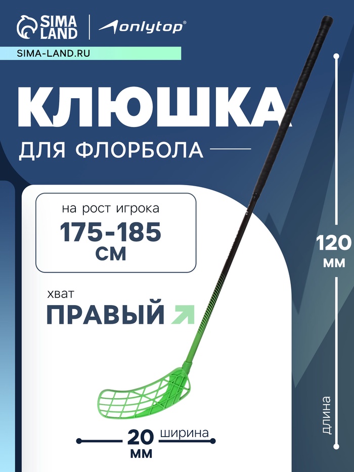 Клюшка для флорбола ONLYTOP, взрослая, правый хват, 95 см, жесткость 20 кг/мм, цвет зелёный