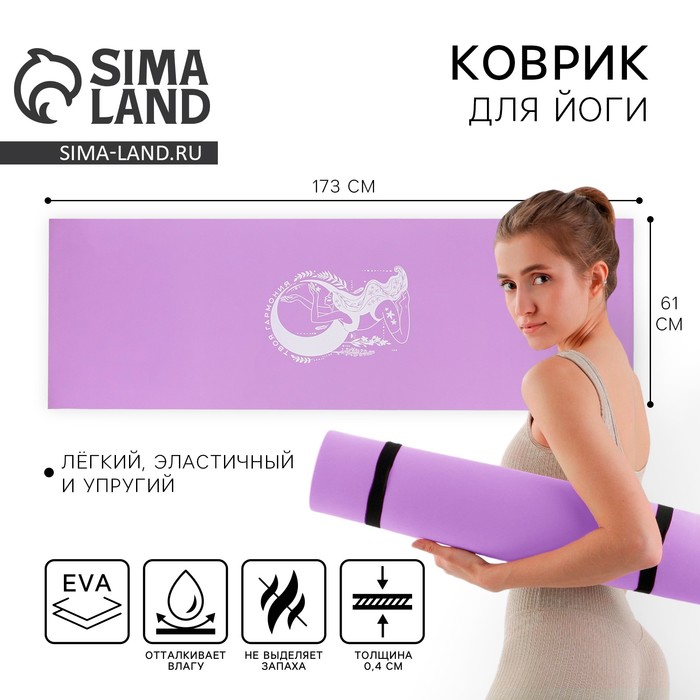 Коврик для йоги «Твоя гармония», 173 х 61 х 0,4 см.