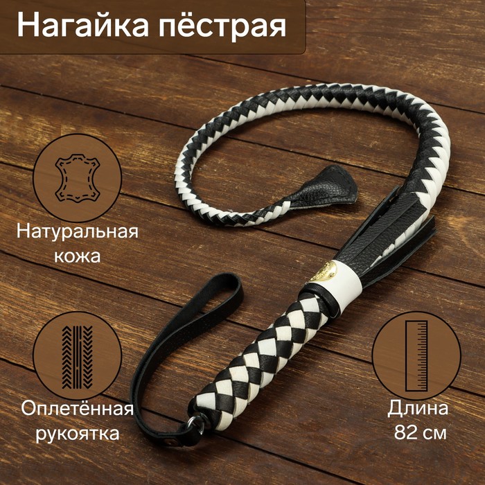 Нагайка пёстрая, натуральная кожа, черно-белая