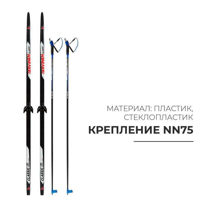 Комплект лыжный: пластиковые лыжи 180 см с насечкой, стеклопластиковые палки 140 см, крепления NN75 мм, цвета МИКС