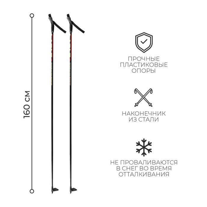 Палки лыжные стеклопластиковые, длина 160 см, цвета МИКС