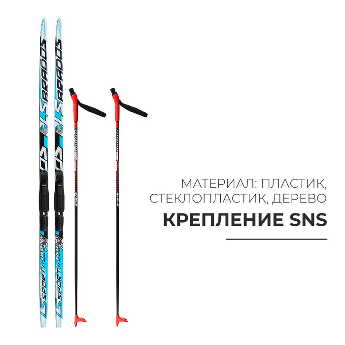Комплект лыжный: пластиковые лыжи 160 см без насечек, стеклопластиковые палки 120 см, крепления SNS, цвета МИКС