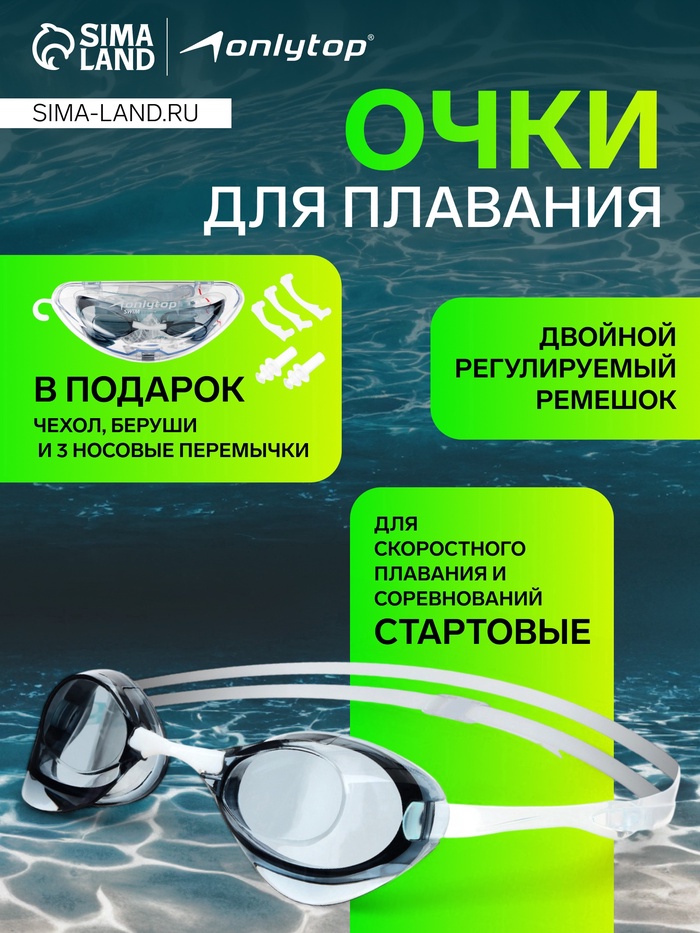 Очки стартовые для плавания ONLYTOP, беруши, набор носовых перемычек