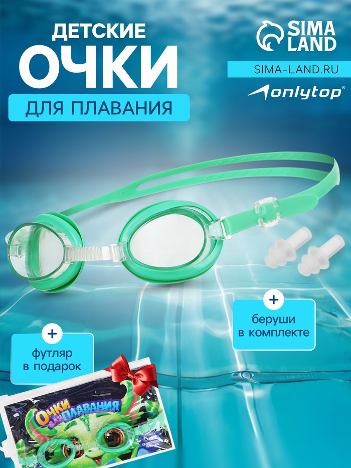 Очки для плавания ONLYTOP, беруши, цвета МИКС