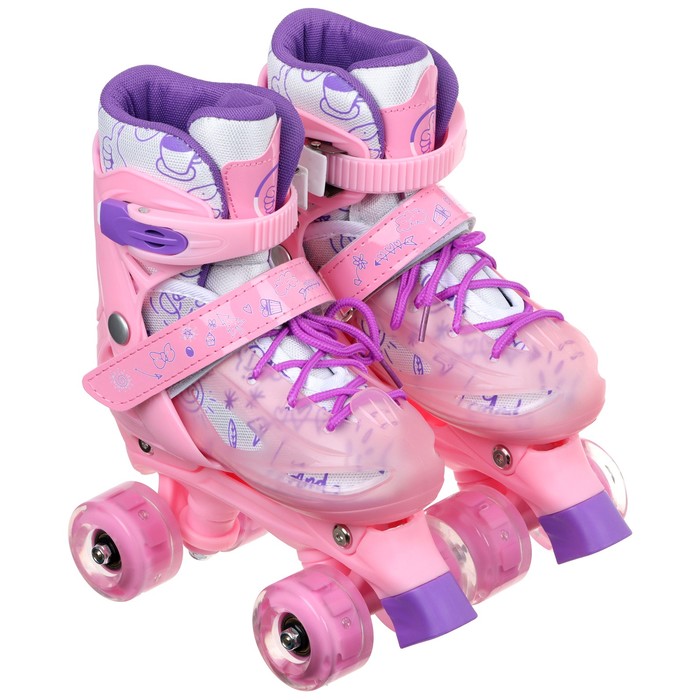 Ролики для обуви раздвижные ONLYTOP, светящиеся колёса, PU 70 мм, ABEC 5, розовые