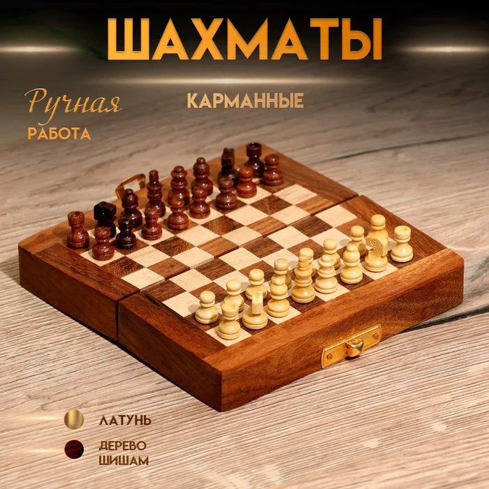 Шахматы карманные, доска 12,5х12,5 см, дерево шишам