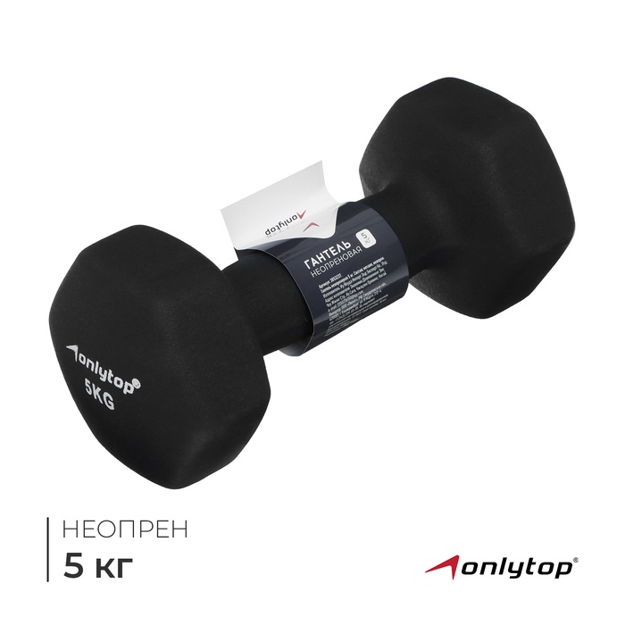 Гантель неопреновая ONLYTOP, 4 кг, цвет серый