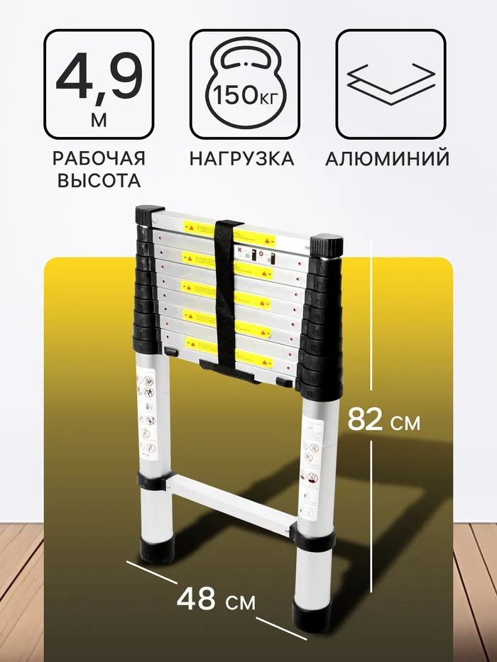 Лестница телескопическая ТУНДРА, алюминиевая, 7 ступеней, 2 м