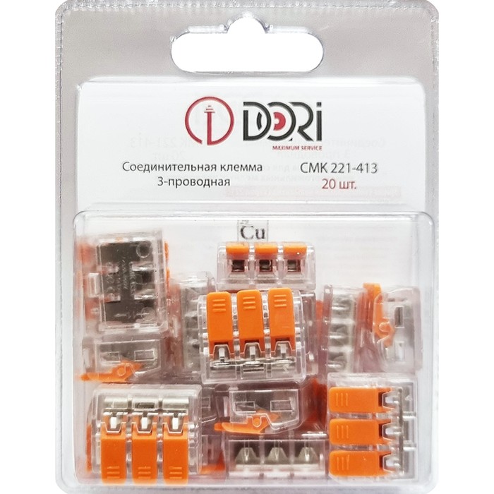Соединительная клемма DORI (СМК 221-413) 3-х проводная, прозрачная 20 шт. в блистере