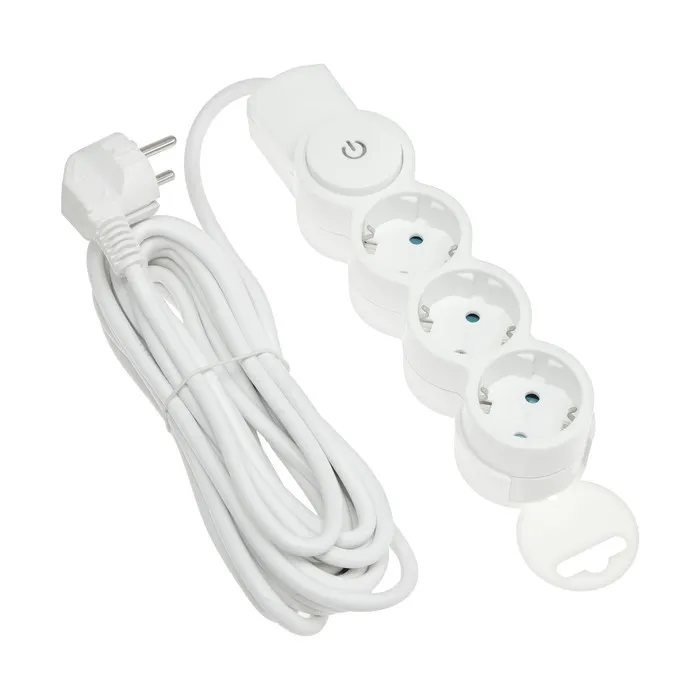 Удлинитель duwi, 3 розетки, 5 м, 10 А, 2200 Вт, ПВС 3х0.75 мм2, с з/к, с выключателем, белый
