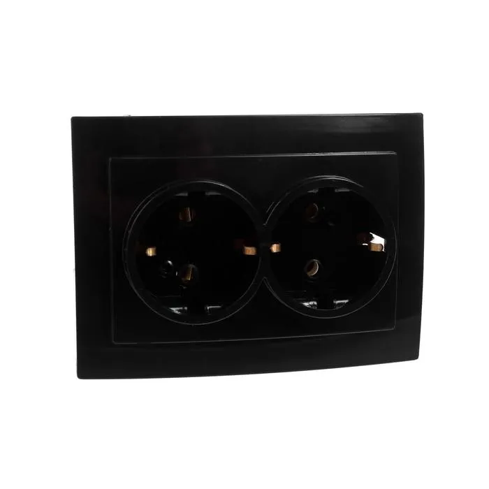 Розетка «Элект» RS 16-238-Ч, двухместная, с з/к, скрытая, черная