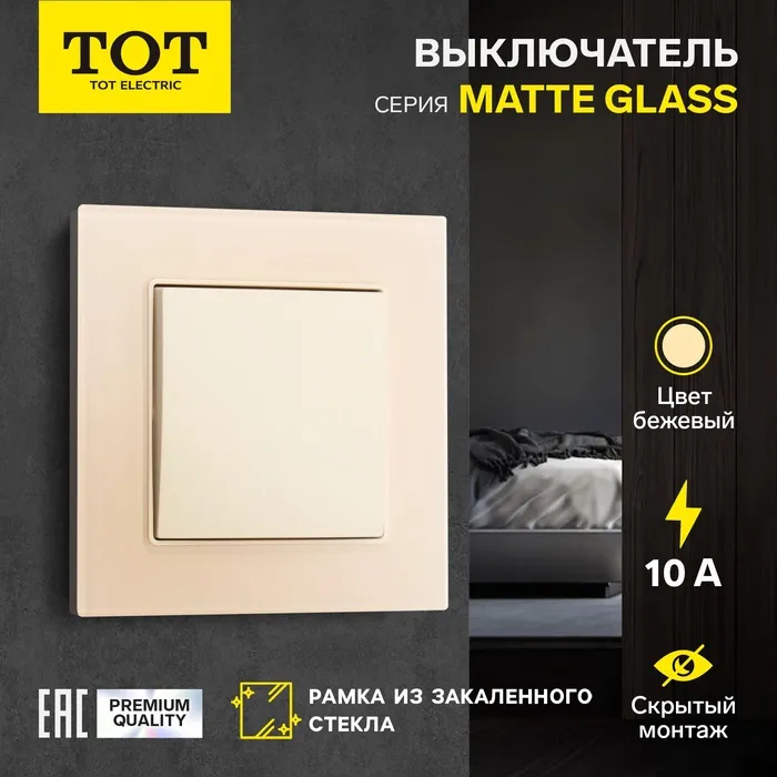 Выключатель проходной TOT Matte Glass, 10 А, 1 кл., скрытый, стекло, бежевый