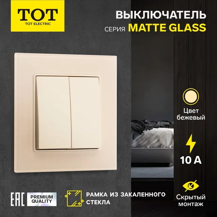 Выключатель проходной TOT Matte Glass, 10 А, 2 кл., скрытый, стекло, бежевый