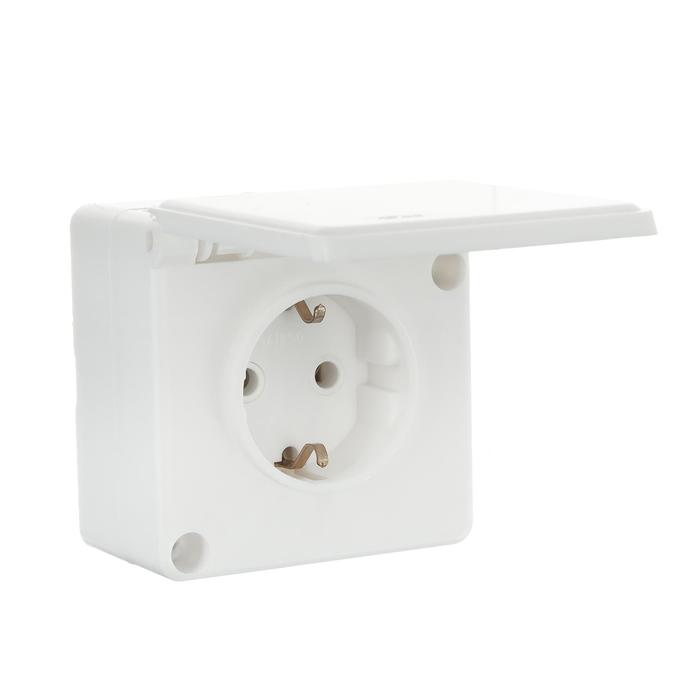 Розетка "Элект" РА 16-005, 16 А, 250 В, одноместная, открытая, с з/к, с крышкой