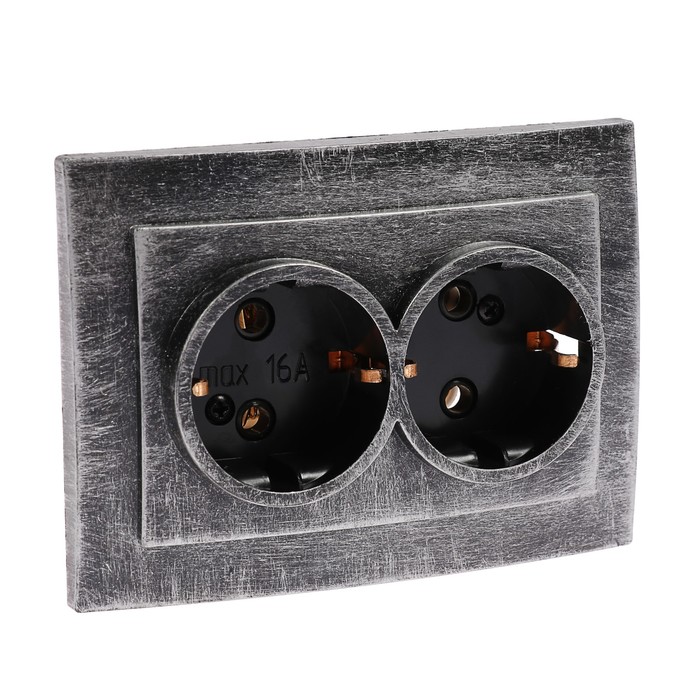 Розетка "Элект" RS 16-238-ЧС, 16 А, 250 В, двухместная, скрытая, с з/к, черная под серебро