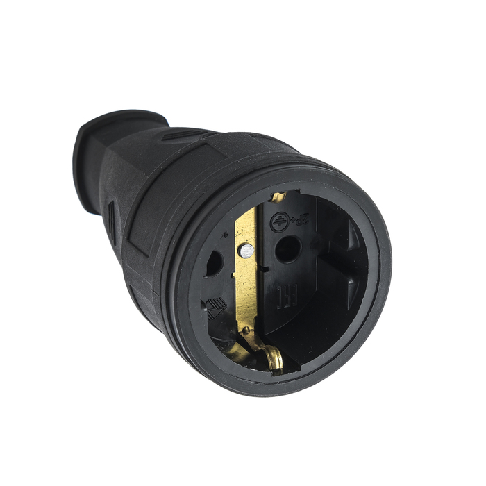 Розетка переносная РА 16-005, 16 А, 250 В, IP20, с з/к, без заглушки, каучук, черная