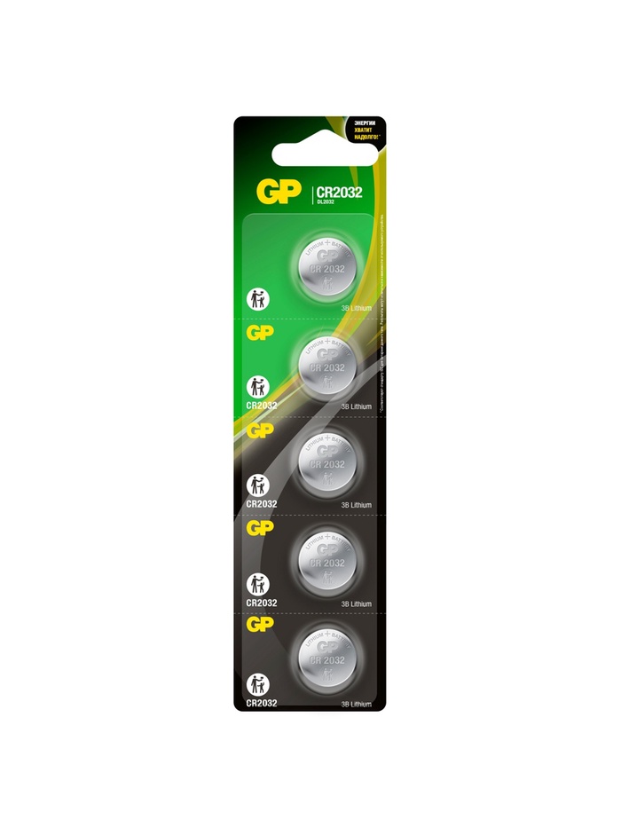 Батарейка литиевая GP, CR2032-5BL, 3 В, блистер, 5 шт.