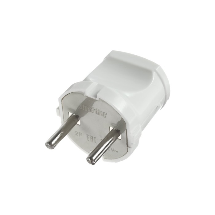 Вилка прямая Smartbuy, 10 А, 240 В, без заземления, белая