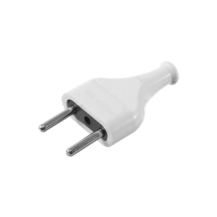 Вилка прямая, 10 А, без заземления, 220 В, белая