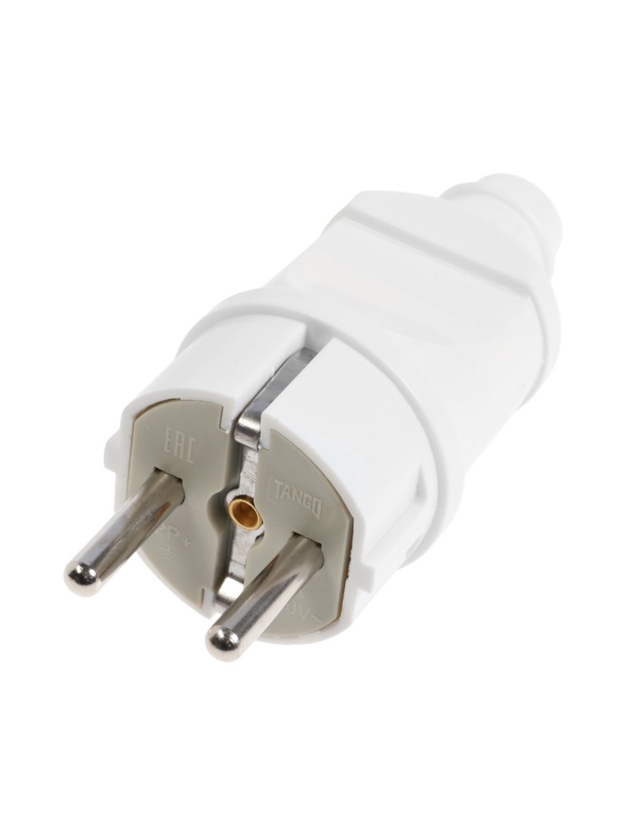 Вилка прямая TANGO, 16 А, 250 В, IP20, с заземлением, белая