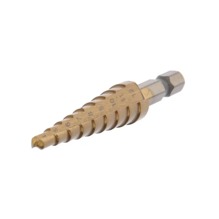 Сверло ступенчатое ТУНДРА, HSS, TiN, шестигранный хвостовик, 4-12 мм
