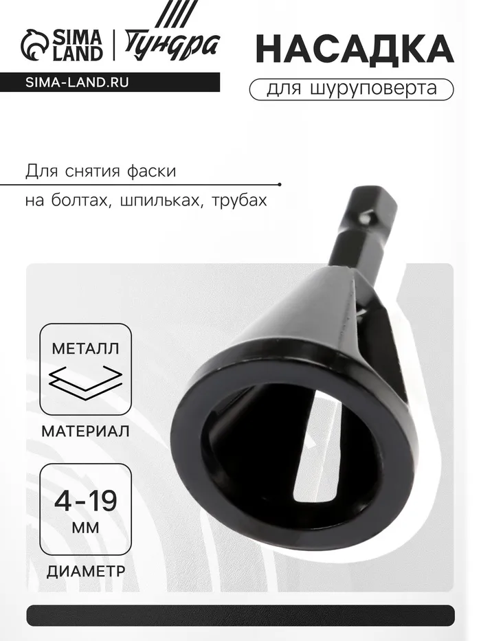 Насадка для шуруповерта ТУНДРА, d=4-19 мм, для снятия фаски на болтах, шпильках, трубах