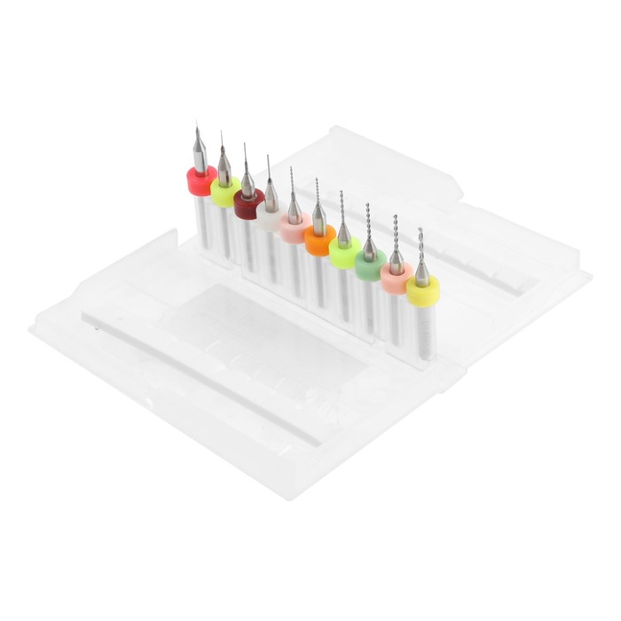 Набор сверл для ЧПУ печатных плат ТУНДРА, карбид вольфрама, 0.1 - 1 мм, 3.2 мм, 10 шт.