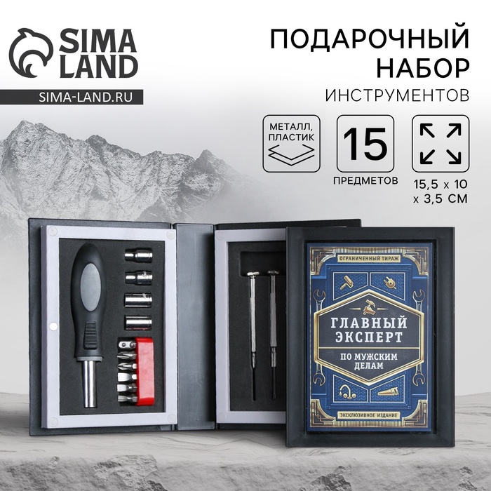 Подарочный набор инструментов в книге «Главный эксперт», 15 предметов