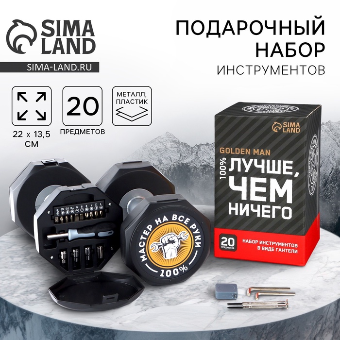 Подарочный набор инструментов в гантеле Golden Man, 20 предметов