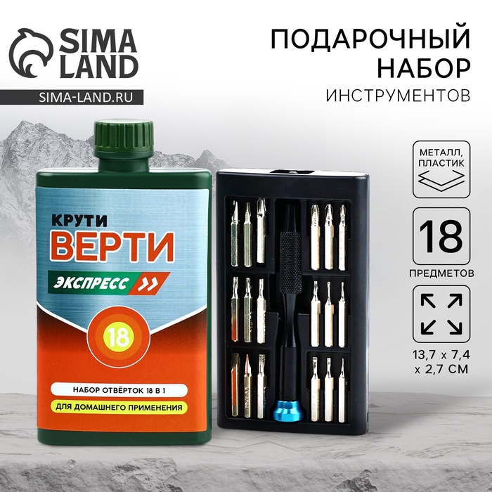 Подарочный набор отверток в фляге «Крути верти», 18 предметов