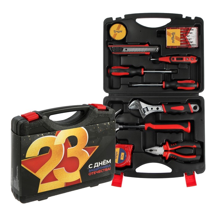 Набор инструментов в кейсе ТУНДРА «23 ФЕВРАЛЯ», в подарочной упаковке, 15 предметов