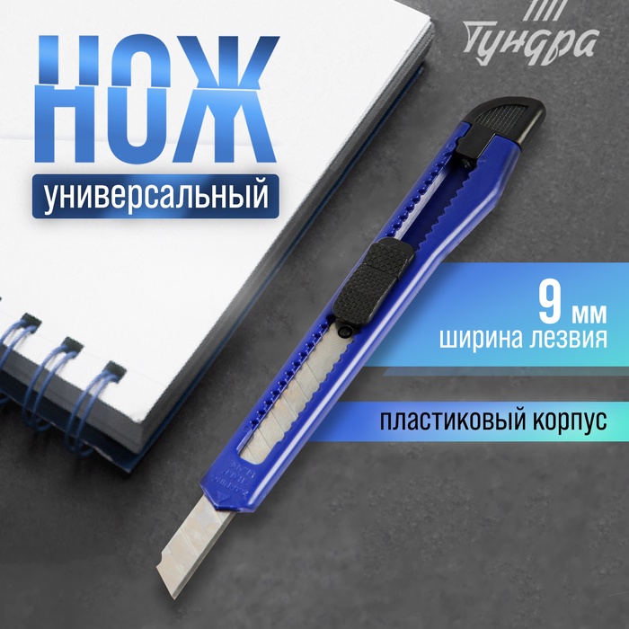 Нож универсальный ТУНДРА, пластиковый корпус, 9 мм