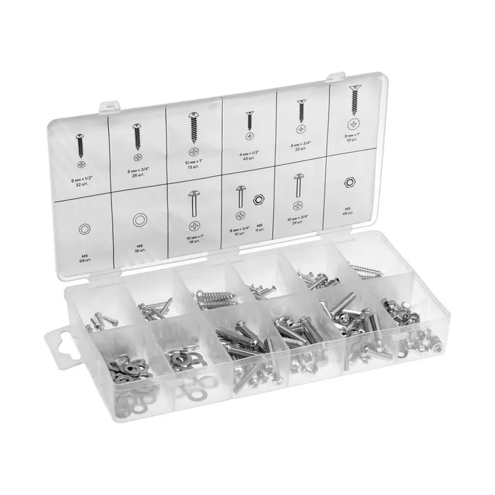 Набор болтов, винтов, гаек и гроверов ТУНДРА krep, 240 предметов