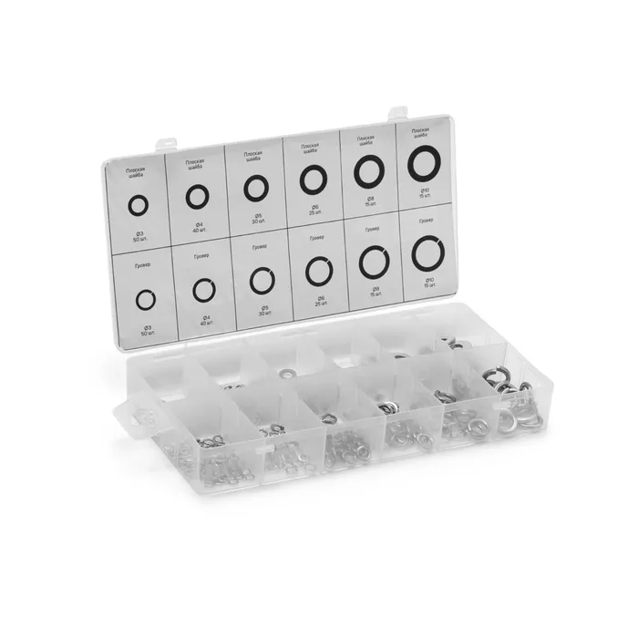 Набор шайб плоских и пружинных ТУНДРА krep, 350 предметов