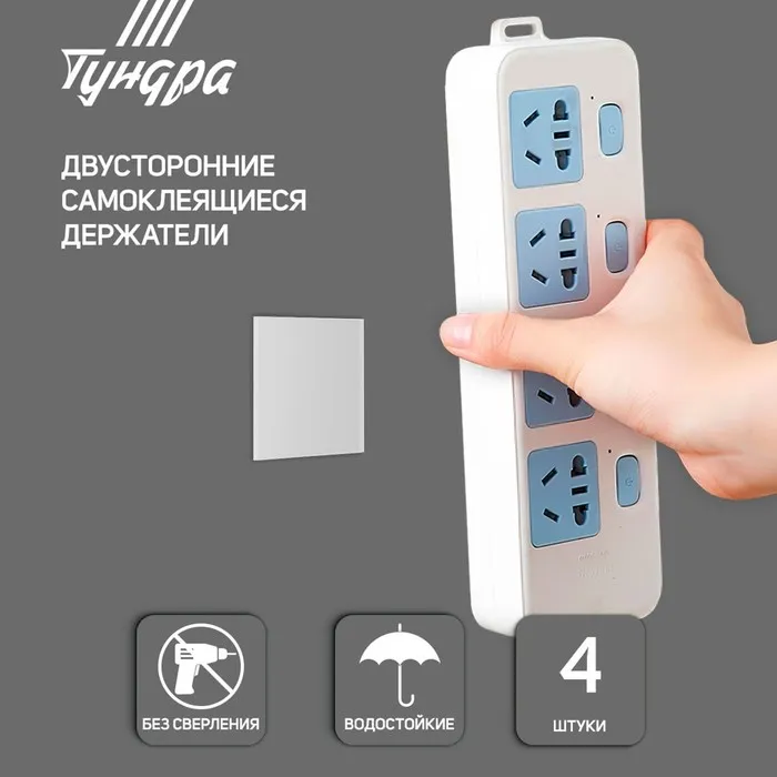 Двусторонние самоклеящиеся держатели ТУНДРА, 33,5х33,5 мм, 8 шт.