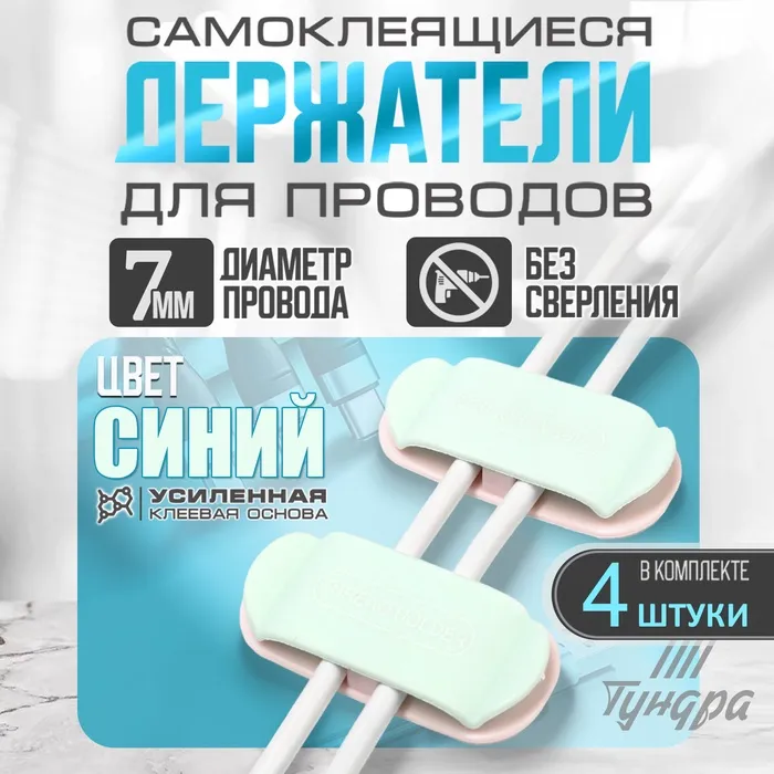 Держатель для проводов 75×30 мм, синий, 4 шт.