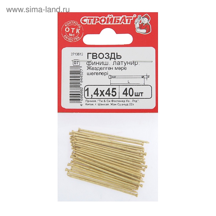 Гвозди СТРОЙБАТ, финишные, ГОСТ 7811-7035, латунированные, 1.4×45 мм, 40 шт.