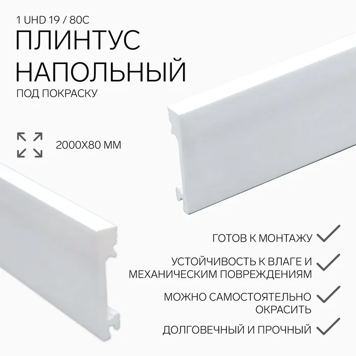 Плинтус напольный под покраску «Солид» 1 UHD 19/80С, 80×2000 мм, цвет белый